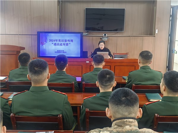2024年12月4日是第十個國家憲法日,宣城市宣州區(qū)退役軍人事務局到武警駐宣某部舉辦“送法進軍營”憲法宣傳周活動,為部隊官兵上了一堂生動活潑的憲法課。
