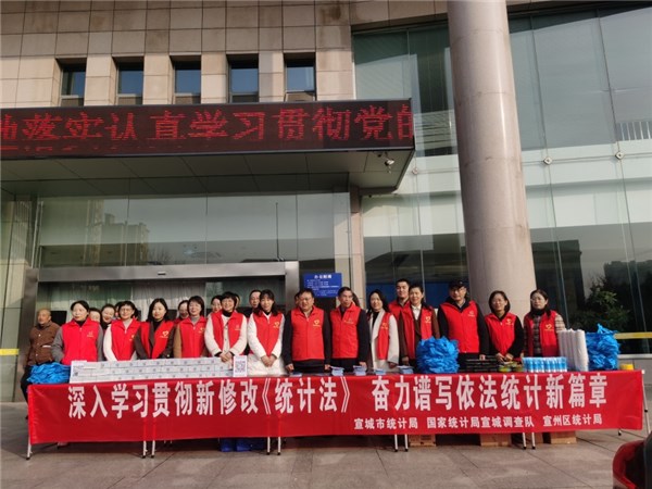 為深入宣傳貫徹新修改的《中華人民共和國統(tǒng)計(jì)法》,提高全社會依法統(tǒng)計(jì)依法治統(tǒng)意識,12月6日上午,宣城市統(tǒng)計(jì)局、國家統(tǒng)計(jì)局宣城調(diào)查隊(duì)及區(qū)統(tǒng)計(jì)局聯(lián)合開展了一場別開生面的《統(tǒng)計(jì)法》頒布紀(jì)念日宣傳活動。