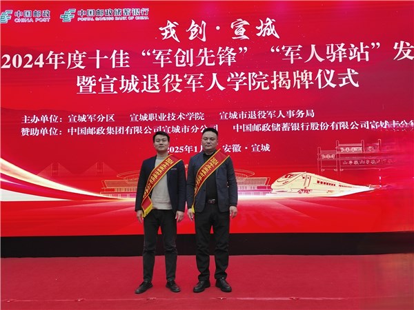 1月3日,宣城軍分區(qū)、宣城職業(yè)技術學院、宣城市退役軍人事務局主辦了2024年度十佳退役軍人“創(chuàng)業(yè)先鋒”“軍人驛站”發(fā)布儀式活動。宣州區(qū)安徽朗盾建材科技有限公司董事長陳佳、宣城市勇博人力資源服務有限公司總經理李鵬兩人榮獲戎創(chuàng)·宣城“十佳創(chuàng)業(yè)先鋒”稱號。